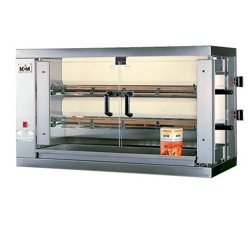 Asador Vertical a Gas de 2 Espadas 2 EG MCM. Concebido parar ser instalado sobre mesas de tubo, mesas calientes o armarios de dos puertas con estantes. *Venta opcional de Soporte con Ruedas PTI-1.