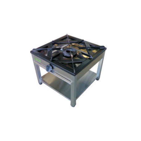 Cocina industrial de gran capacidad, fabricada en acero inoxidable con sistema de seguridad y parrillas de hierro.