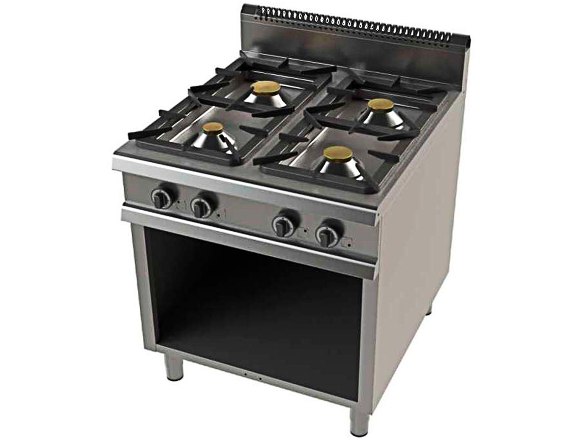 Cocina a gas simple corona con llama piloto fondo 900 junex FO9C400 de CLIMA HOSTELERÍA, estructura construida en acero inoxidable.