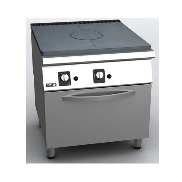 Cocina a gas todo plancha con horno a gas C-G911 de FAGOR, con encimera embutida fabricada en acero inoxidable AISI-304 de 2 mm de espesor.