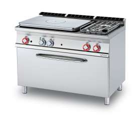 – Placa de cocción + 2 fuegos sobre Horno a gas estático GN 3/1 cm. 108x55x34h – Placa cm. 77×57