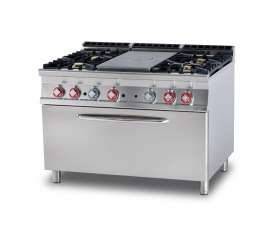 -Placa de cocción + 4 fuegos – Placa cm. 37×73 – Horno a gas estático GN 3/1 cm. 108x73x34h