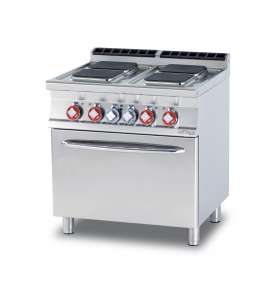 -Cocina eléctrica – N. 4 planchas cuadradas – Horno eléctrico ventilado GN 1/1 cm. 68x36x34h