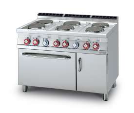 -Cocina eléctrica – N. 6 planchas – Horno eléctrico estático GN 2/1 cm. 68x55x34h