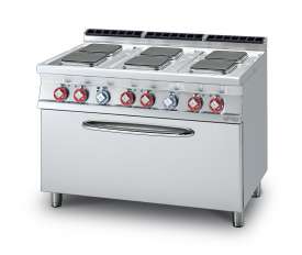 -Cocina eléctrica – N. 6 planchas cuadradas – Horno eléctrico estático GN 3/1 cm. 108x55x34h