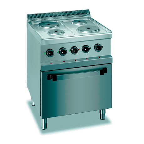 Cocina a gas con Horno eléctrico ME7-70 CON HORNO de EUROFRED con acabado en acero inoxidable.