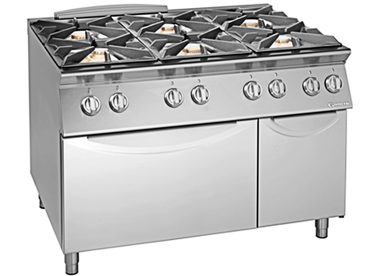 Cocina a gas parrilla estándar con horno eléctrico gama unika 900 giorik CG960E de EUROFRED, de acero, con superficie de cocción troquelada y ajustable en altura.