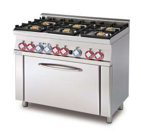 -Cocina mixta con horno estático – N. 6 quemadores – Horno estático con asador GN 1/1