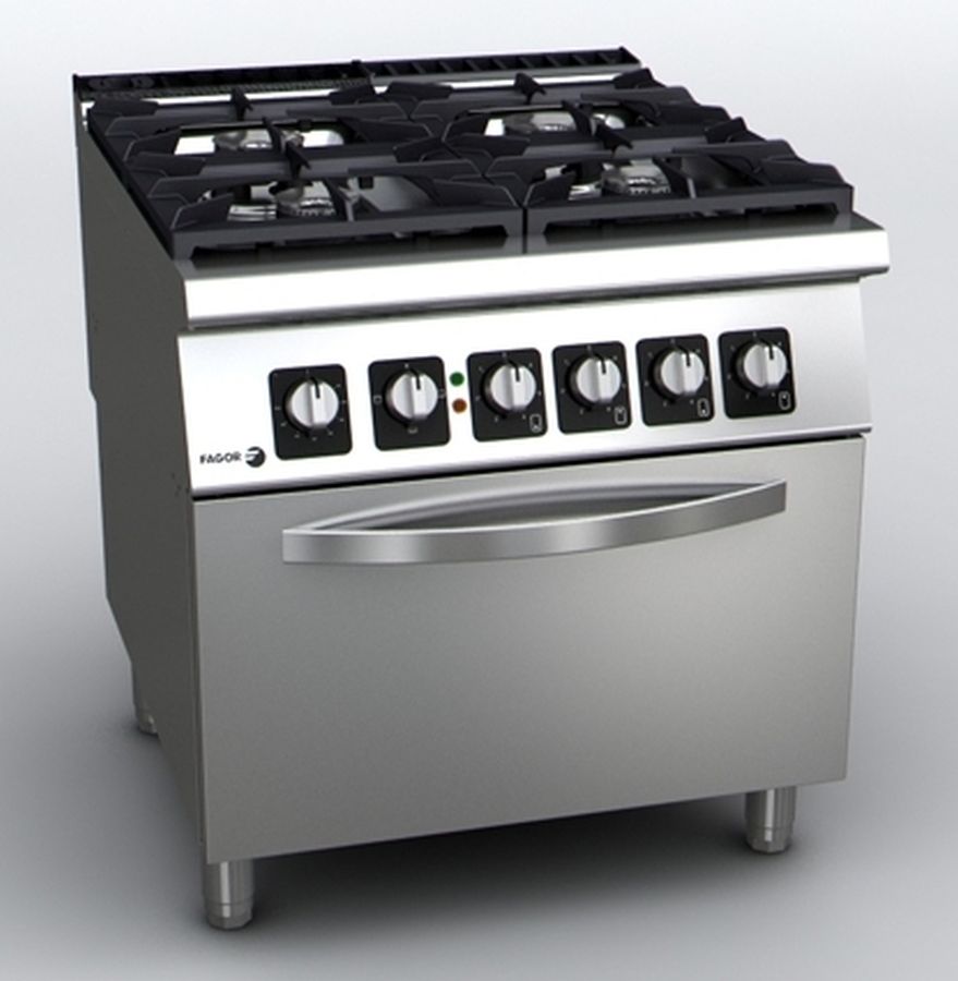 Cocina mixta con horno C-GE941 de FAGOR, fabricada en acero inoxidable AISI-304 de 2 mm de espesor, con encimera embutida.