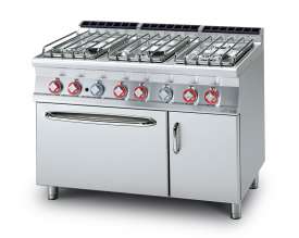 -Cocina a gas -N. quemadores 6 – Horno eléctrico estático GN 2/1 cm. 68x55x34h