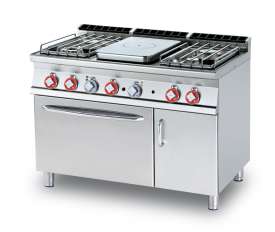 – Placa de cocción + 4 fuegos sobre Horno eléctrico ventilado GN 1/1 cm. 68x36x34h – Placa cm. 37×57