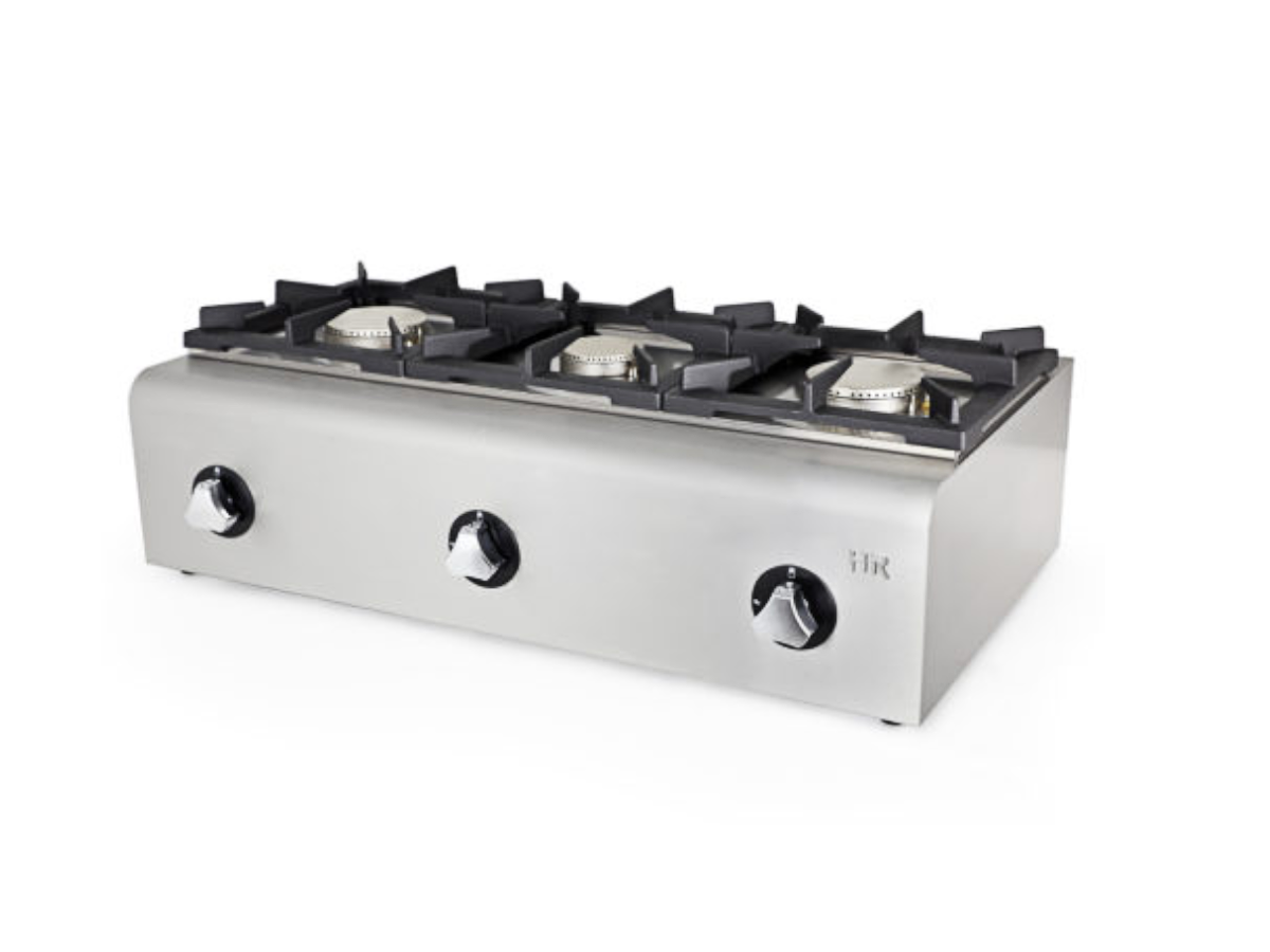 Fogón a Gas FG900 de HR Fainca con fuegos superiores de gran rendimiento calorífico. Cuerpo en acero