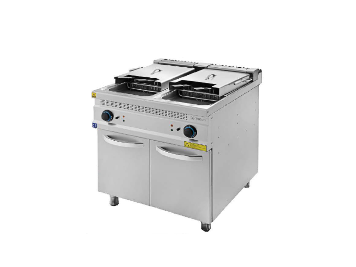Freidora a Gas de DOBLE Cuerpo de EUTRON con cubas mono-bloque.