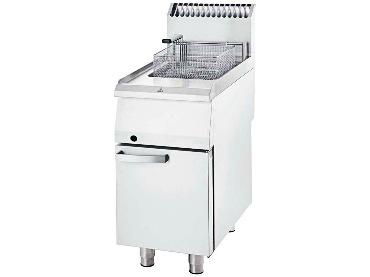 Freidora sencilla equipada con cesta de 310x300x120 mm.