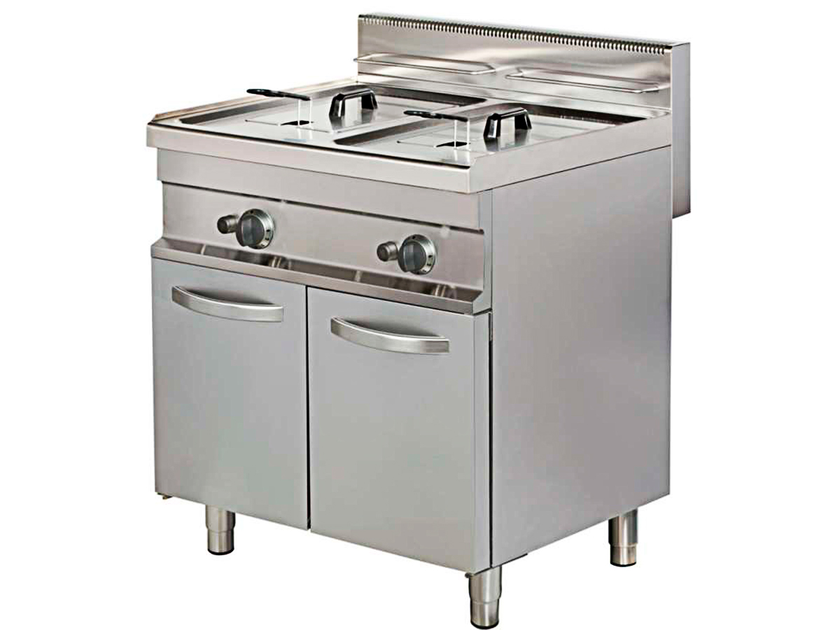 Freidora a gas fondo 900 GF922 de CLIMA HOSTELERÍA, con estructura construida en acero inoxidable.