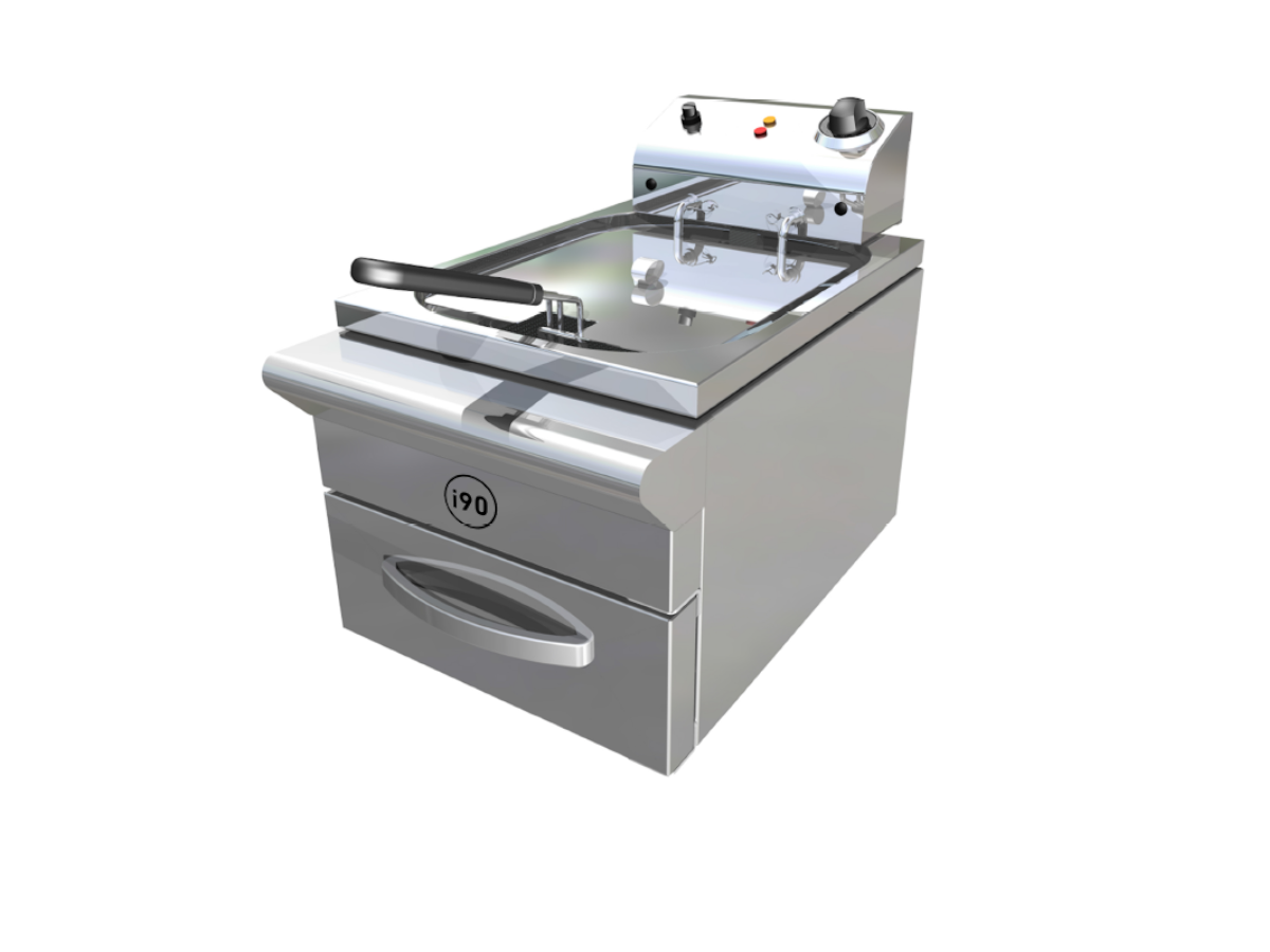 Freidora de Aceite Eléctrica Cabezal Móvil FAH10 230 I90 con Termostato de seguridad, construida totalmente en acero inoxidable AISI 304.