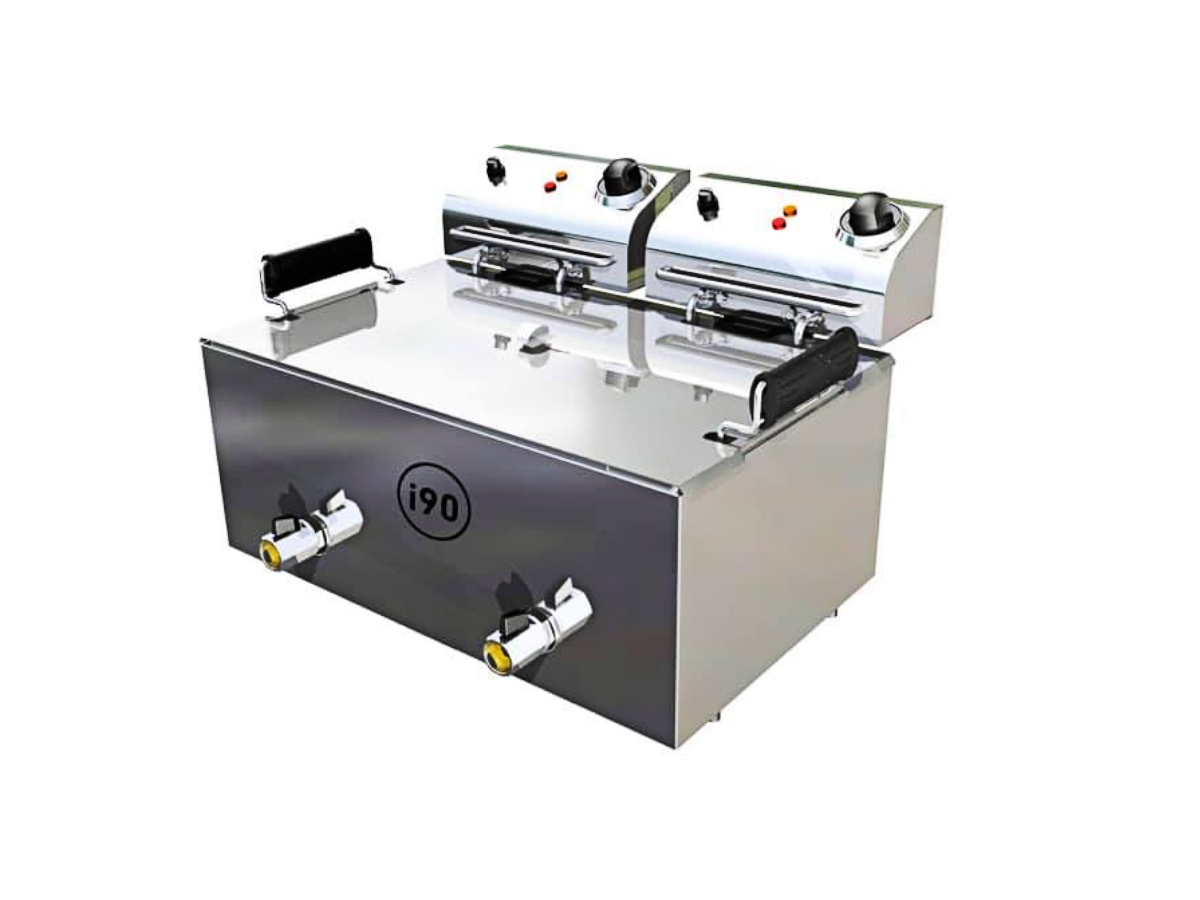 Freidora de Aceite Eléctrica con Grifo FA20 I90 termostato de trabajo regulable, en acero inoxidable AISI 304.