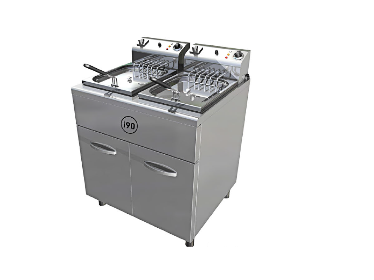 Freidora de Aceite FSM17+17 230 de I90 con termostato de trabajo regulable. En acero inoxidable.
