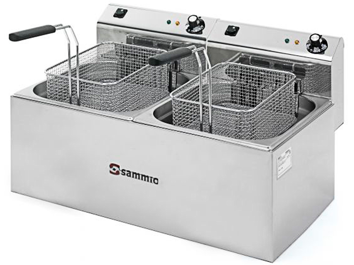 Freidora eléctrica 7+7 litros serie gastronorm F-10+10 de SAMMIC, compacta con cuba desmontable.