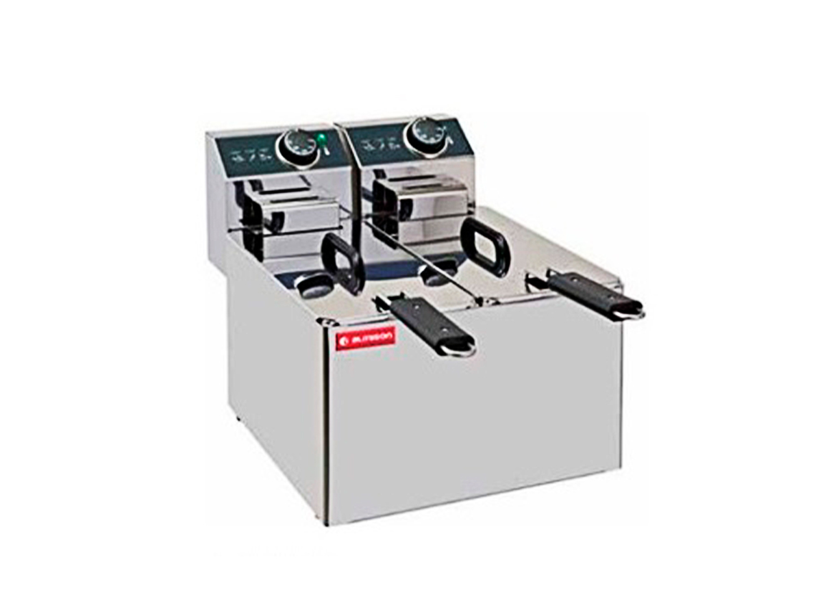 Freidora eléctrica ALMFR4+4LSSG de ALMISON, construida totalmente en acero inoxidable.