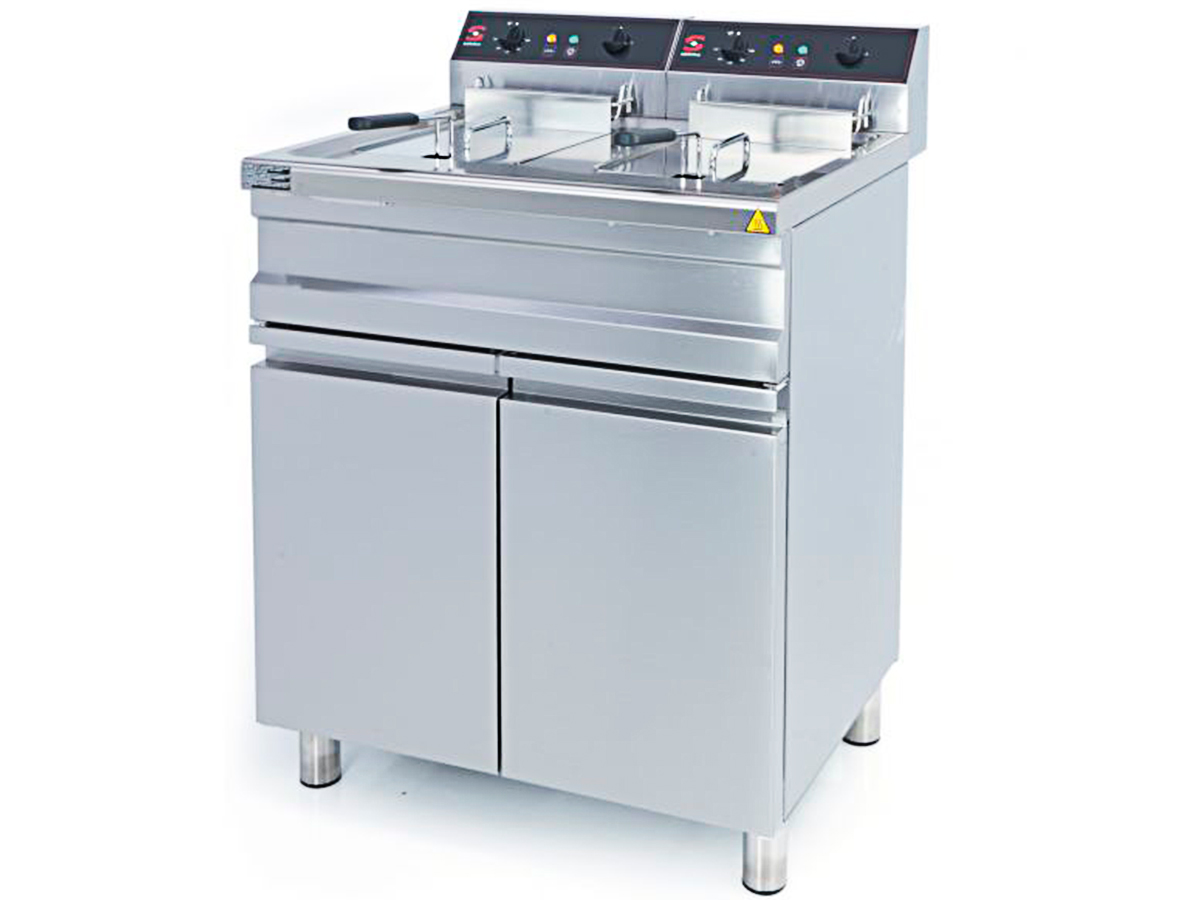 Freidora eléctrica con mueble 14+14 litros FE-15+15 de SAMMIC, de cuba soldada provista de grifo de vaciado.