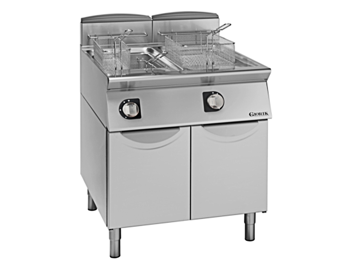 Freidora eléctrica gama unika 700 giorik 17+17 litros FE7217 de EUROFRED. Mueble totalmente de acero y encimera estampada con espesor 1,2 mm.