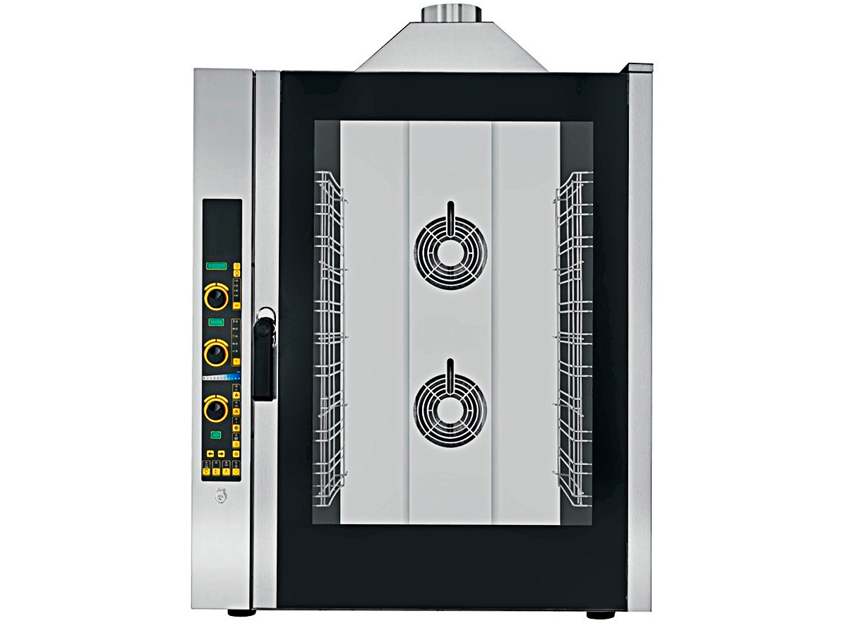 Ideal para tiendas gastronómicas y restaurantes de medianas y grandes dimensiones. Podrá personalizar sus recetas mediante el cómodo control electrónico de 99 programas, que le permite cocinar en 4 fases distintas. Gracias a su encendido retardado programable, podrá decidir con antelación el momento en el que se deben preparar sus platos personalizando al máximo su cocción con vapor directo.