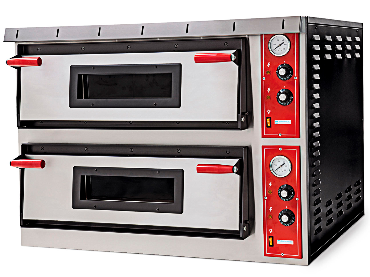 Horno pizza compacto bicámara napoli XL 6L+6L de EUROFRED, fabricado en acero inoxidable y chapa prepintada.