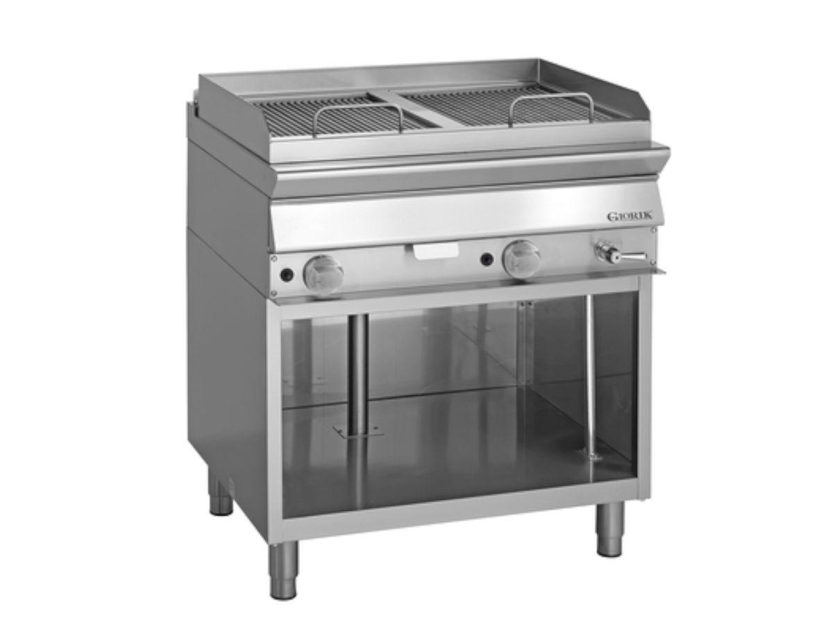 Aqua-grill a gas gama unika 700 giorik GL74GV de EUROFRED, realizada completamente en acero y encimera con espesor 1,2 mm.