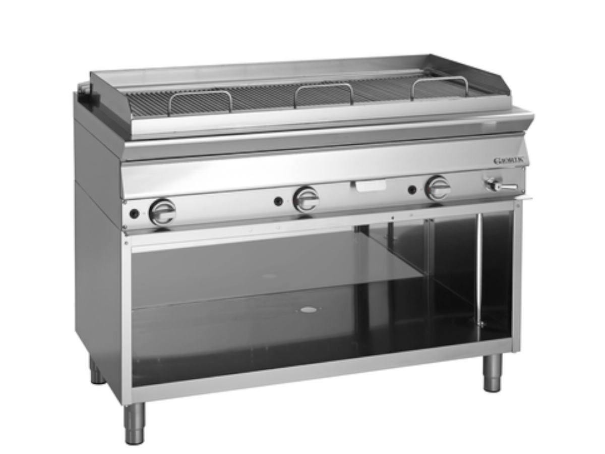 Aqua-grill a gas gama unika 700 giorik GL76GV de EUROFRED, realizada completamente en acero y encimera con espesor 1,2 mm.