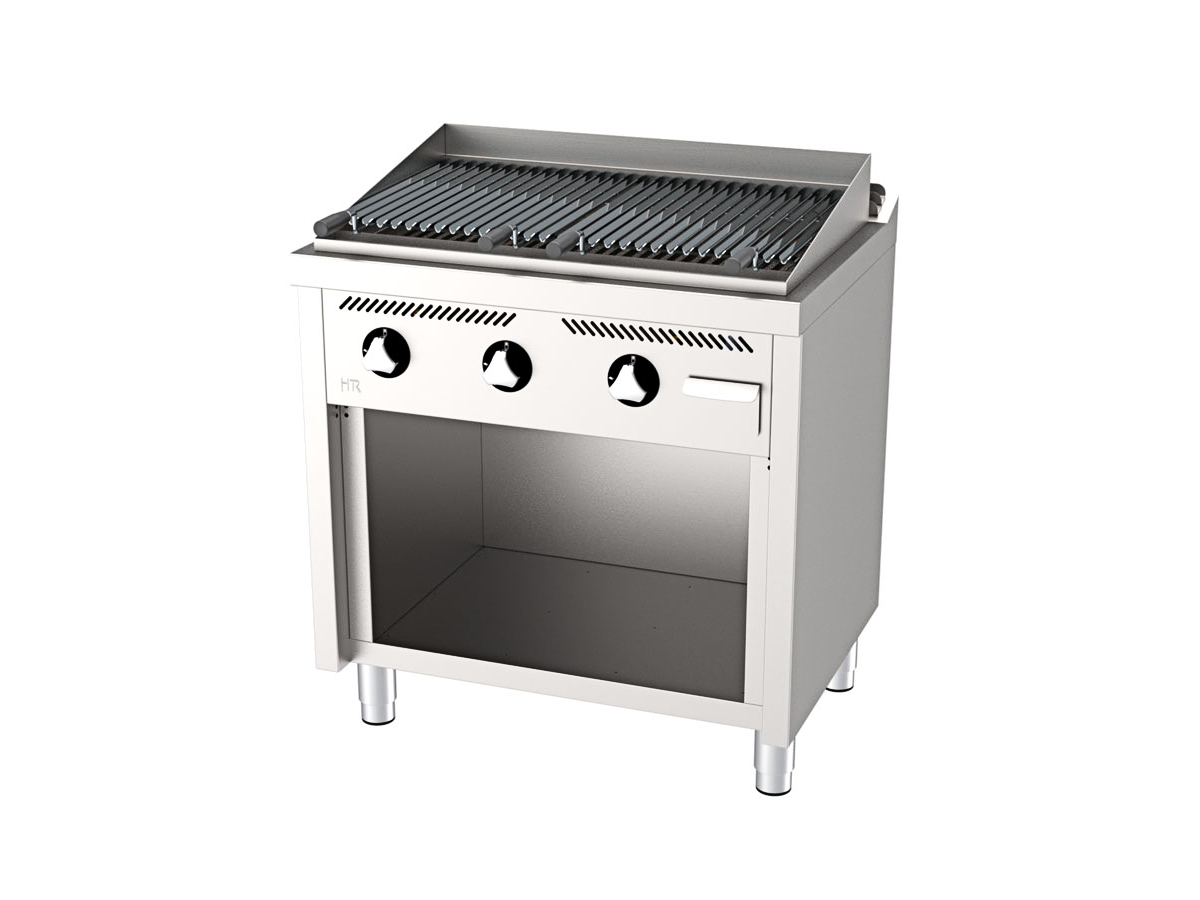 Barbacoa a Gas B6008E de HR Fainca con cajón recoge-grasa extraíble en la parte frontal. Cuerpo en acero inoxidable AISI 304. Parrilla con perfiles en V de serie. Termopar de seguridad. Patas de acero inoxidable regulables en altura. Parrilla regulable en altura, extraíble. Dimensiones sin tener en cuenta el saliente del mango. Encimera de acero Inoxidable AISI 304 espesor 1,5 mm. Piedra volcánica