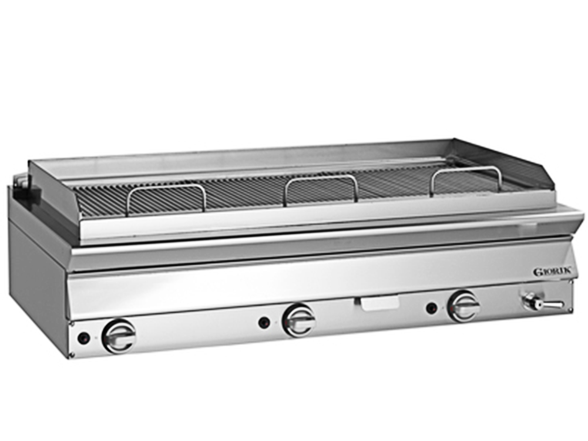 Barbacoa a gas gama unika 700 top giorik GL76TV de EUROFRED, realizada completamente en acero y encimera con espesor 1,2 mm.