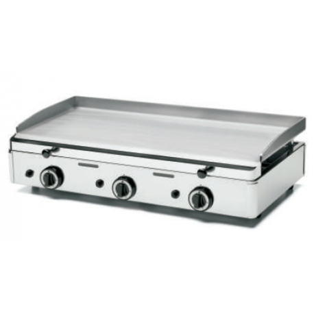Plancha a gas con estructura en acero inoxidable.