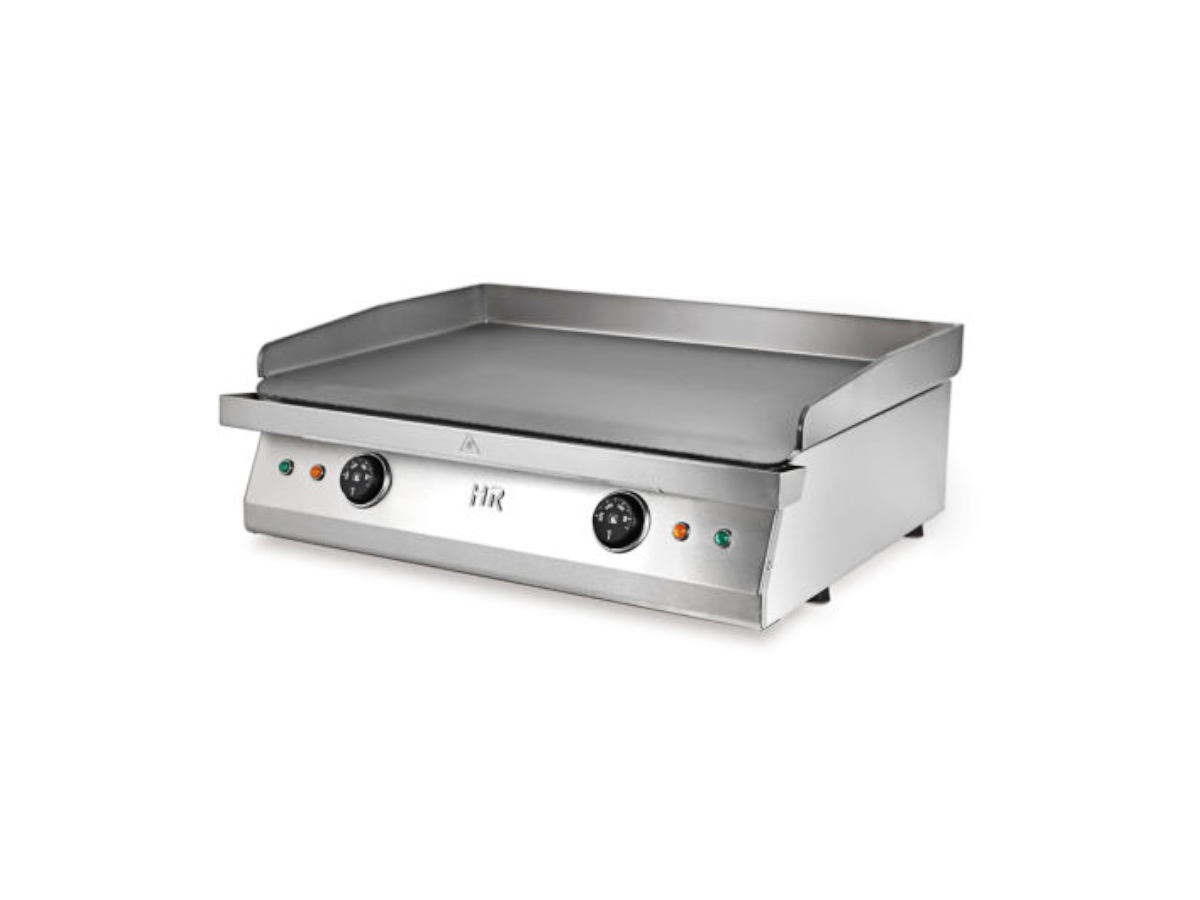 Plancha Eléctrica Cromo PLCE80CR de HR Fainca con dos zonas independientes de calor regulables de 30-300º C. Cajón recoge -grasa extraíble en parte frontal.En este modelo rectificado