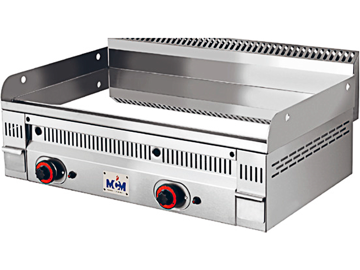 Plancha rectificada termostática fondo 55 a gas PL-120 de MCM, con placa de acero rectificado de 20 mm.
