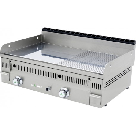 Fry top a Gas Liso PLR-60 N Mainho Profesional. Placa de acero rectificado de 20 mm de espesor. Cajones recolectores de grasas en ambos laterales . Encendido por tren de chispas a batería – válvulas de gas con dos intensidades de calor y llama piloto.Resistencias blindadas de acero inoxidable.