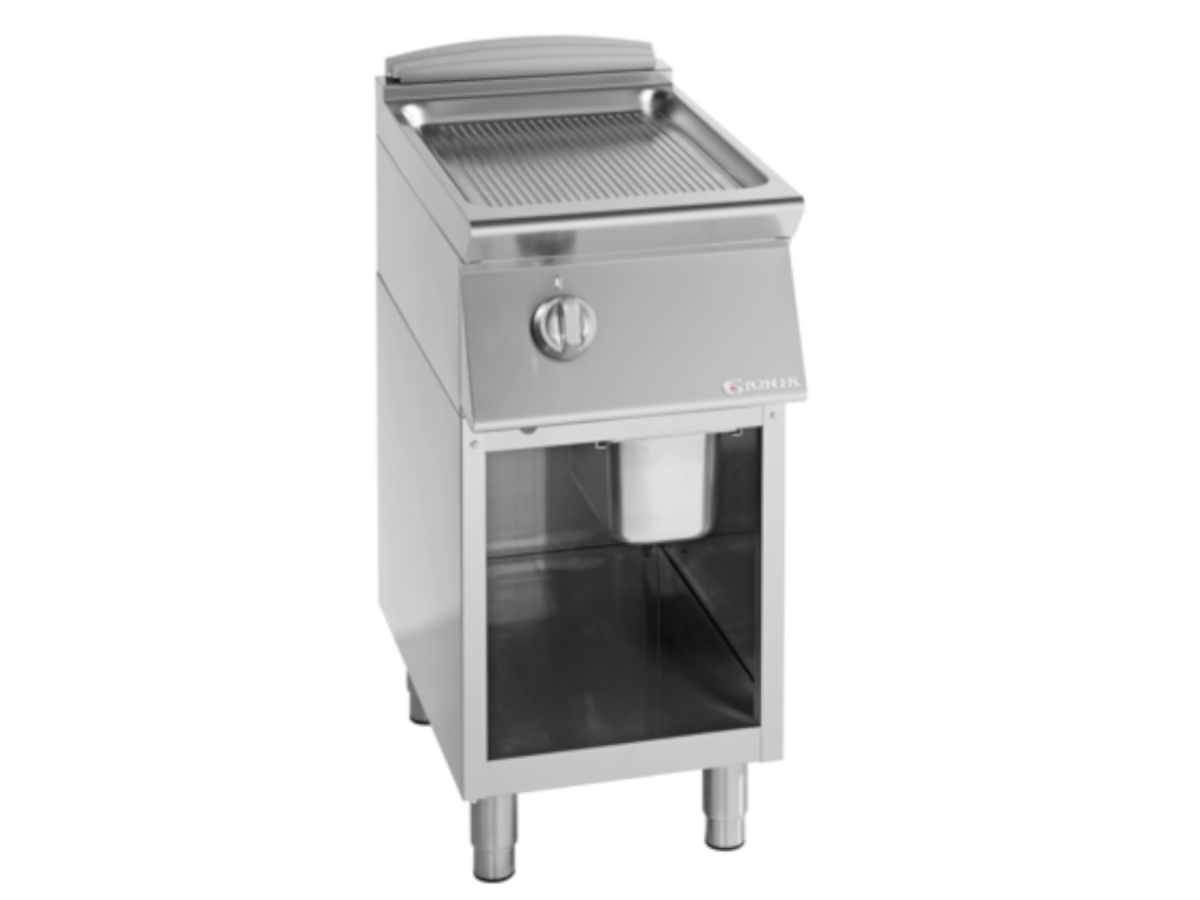 Fry-top acanalado gama unika 700 giorik FRE72GCR de EUROFRED, con estructura de acero y encimera estampada con espesor 1,2 mm.