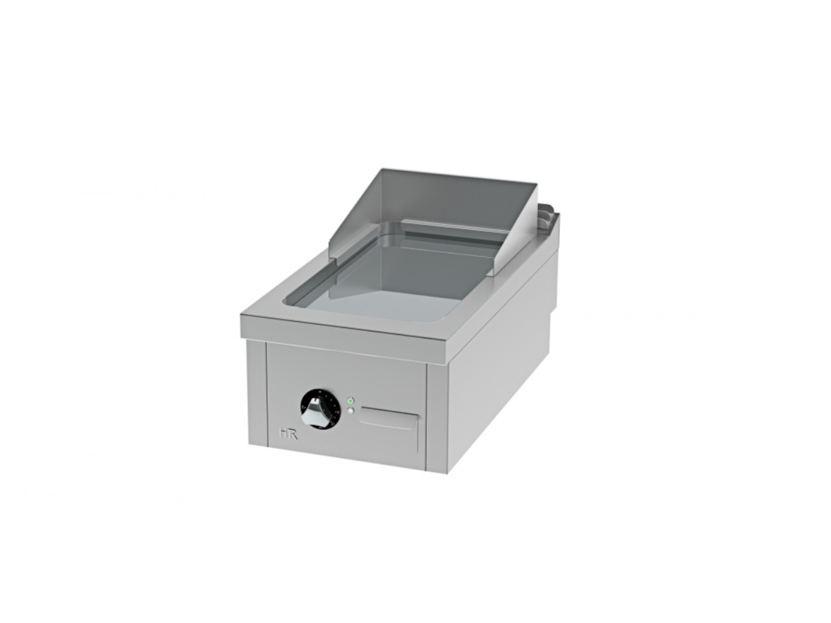 Fry-Top Eléctrico FTE7504SCR de HR Fainca para la preparación rápida de alimentos. Cajón recoge-grasa extraíble en la parte frontal. Palastro de 15 mm. de espesor en acero rectificado o cromo. Cuerpo en acero inoxidable AISI 304. Resistencias en acero inoxidable pulido. Termostato de regulación de 100 a 300ª C. Termostato de seguridad. Patas de acero inoxidable regulables en altura. Palastro soldado