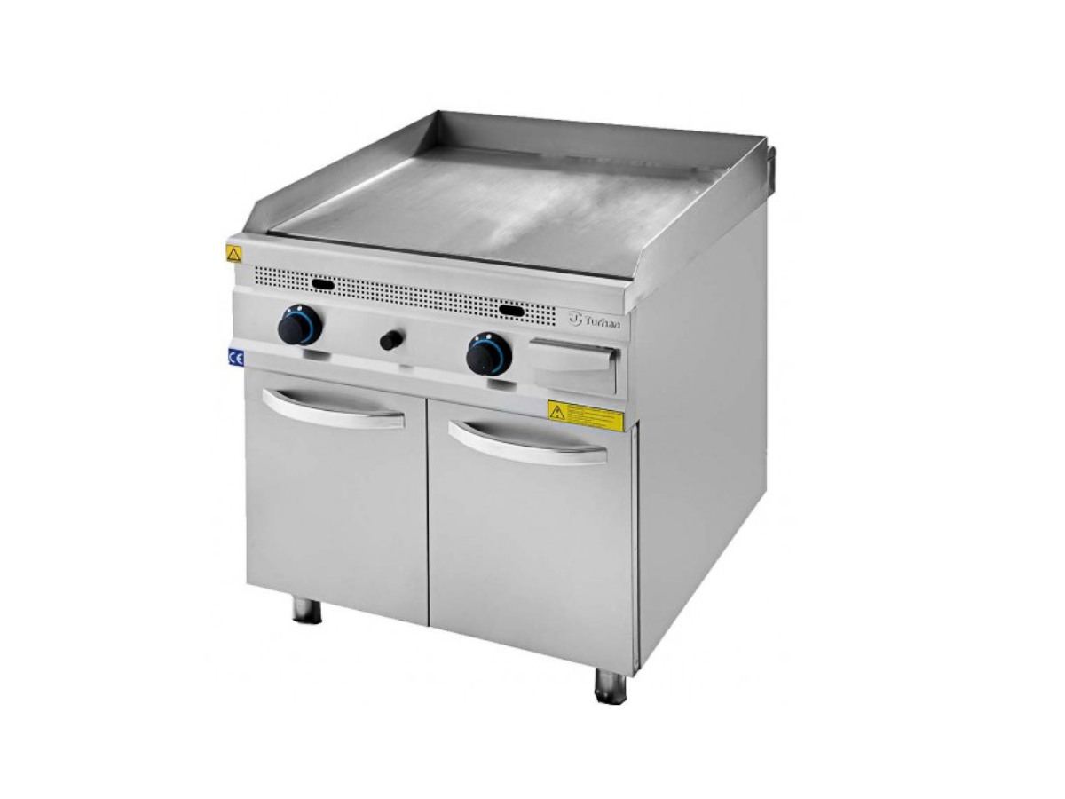 Fry Top Modular Doble a Gas FRY TOP 80 de EUTRON con cajón de recogida de grasa extraíble.