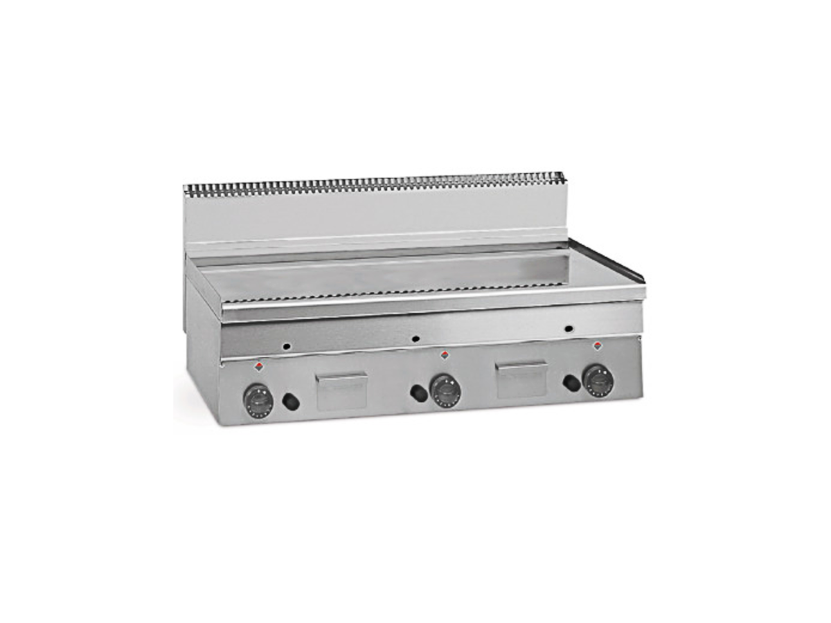 Gama completa de fry-tops lisos y lisos con acabados cromados de sobremesa con posibilidad de ubicarlas sobre su correspondiente soporte.