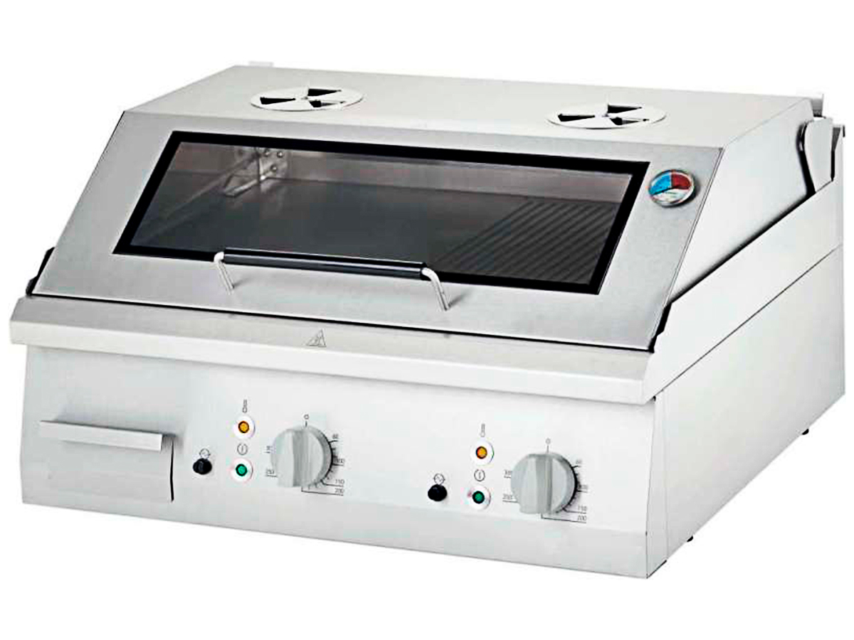 Frytop eléctrico con tapa fondo 700 9731190 de CLIMA HOSTELERÍA, con tapa de acero inoxidable de serie, que permite reducir el consumo de energía hasta en un 30% y mejora el efecto culinario de los productos a la parrilla.