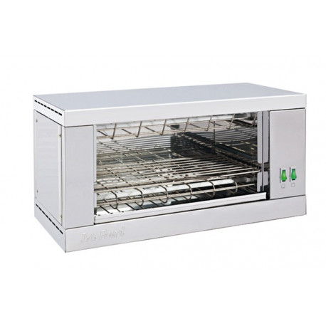Tostador eléctrico construido en acero inoxidable.