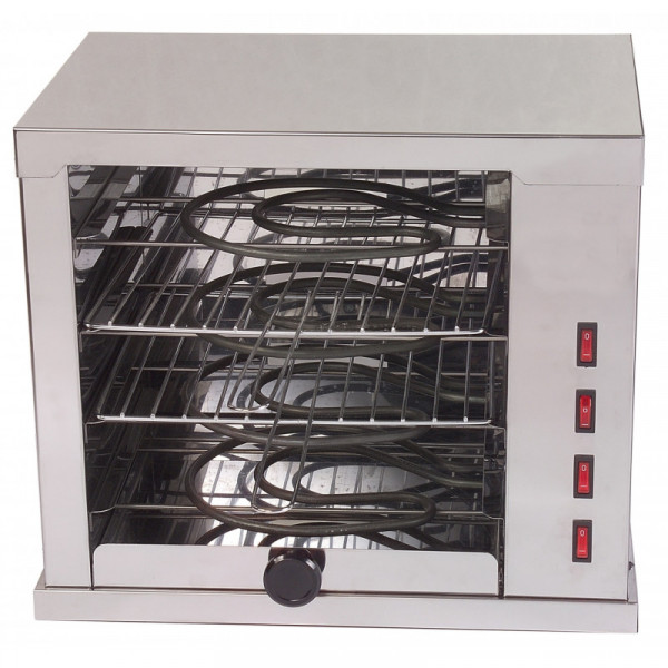 - Horno tostador eléctrico con resistencias blindadas de acero inoxidable fabricadas en España. Funcionamiento independiente que permite un mayor ahorro energético.