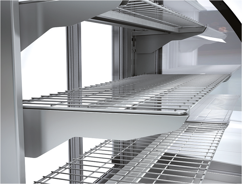 Estantes de varilla de acer regulables (en altura e inclinación), con iluminación LED