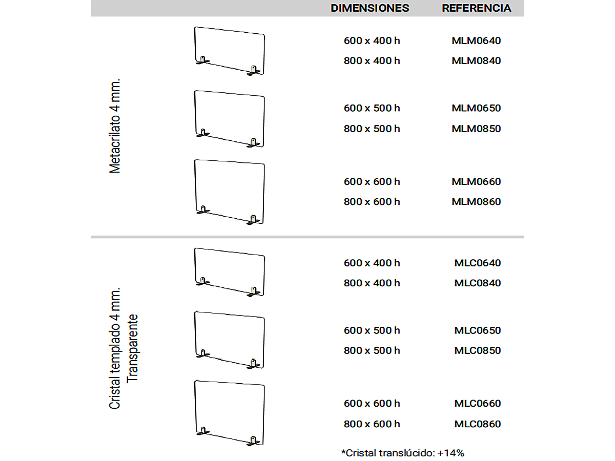 Mampara Protectora Anticontagio Covid-19 Lateral de Mesa de Metacrilato 60 x 40 Mod. MLM0640