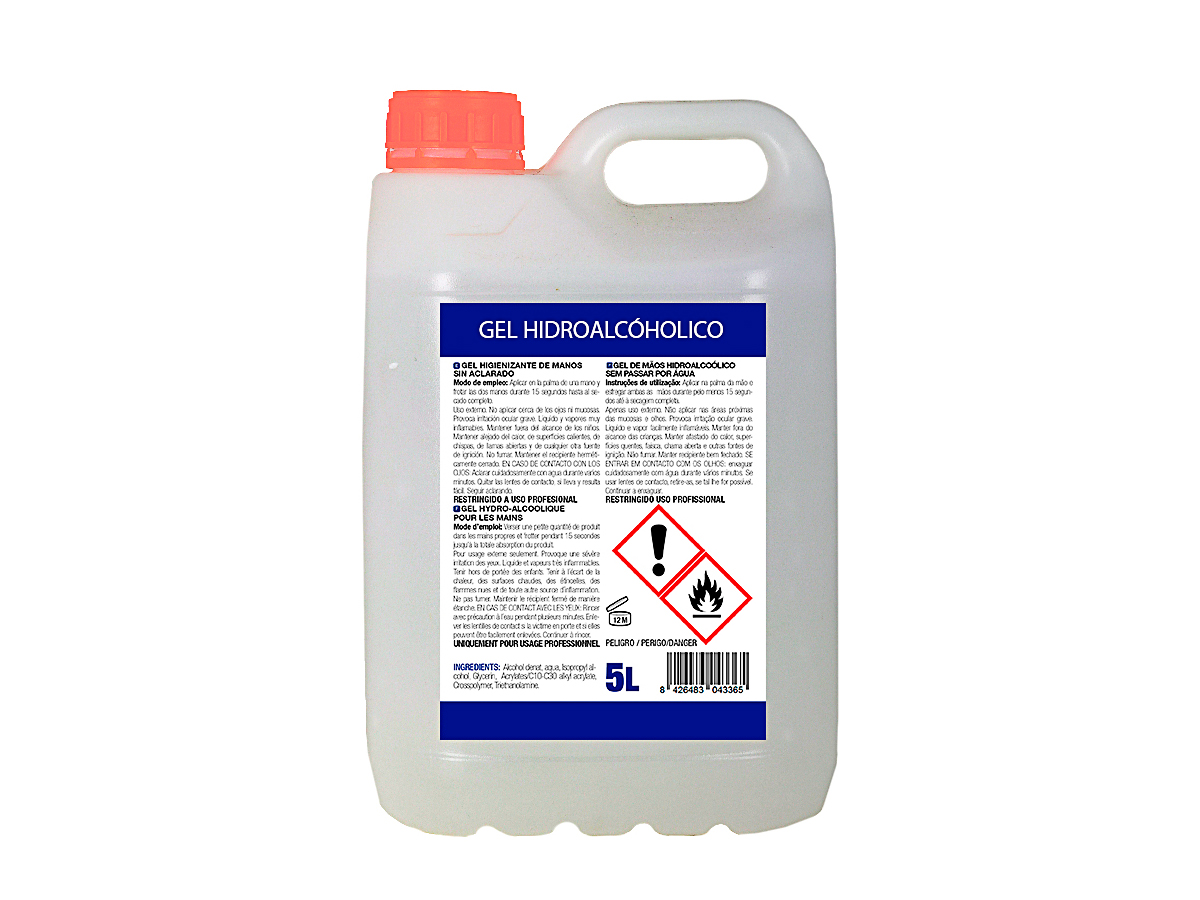 El Gel Hidroalcohólico de 5 litros, es un gel higienizante recomendado para utilizarse en lugares con riesgo de infección por contacto con agentes patógenos como oficinas, hospitales, centros médicos, ambulatorios, industrias cárnicas y chacinerías, cadena de envasado de productos alimenticios o mataderos.