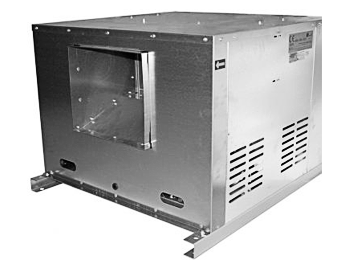 Ventilador montado en caja compacta de acero galvanizado preparada para intemperie.