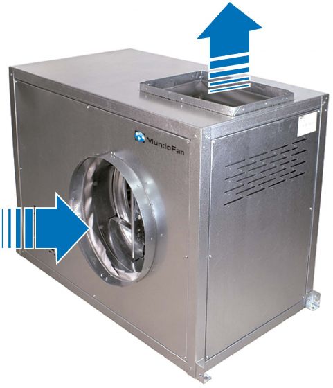 Caja de ventilación trifásica simple aspiración para 400°C/2H marca MUNDOFAN VSA-MU 400°/2H 22/11 3CV impulsión vertical de SALVADOR ESCODA