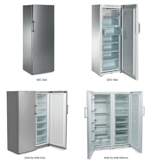 + 5 cajonesCapacidad congelación kg/24h 9 12 20 22 Clase de consumo Tipo T T T T Desescarche MAN/AUT MAN MAN MAN MAN Tensión/Fases V/nº 220 / 2 220 / 2 220 / 2 220 / 2 Refrigerante tipo R600a R600a R600a R600a Control evaporador CP/VE CP CP CP CP Condensador ST/AF/W ST ST ST ST Evaporador ST/AF ST ST ST ST Potencia eléctrica W 105 120 85 85 Consumo eléctrico kwh/24h 0.55 0.61 0.7 0.76 Ancho externo mm 540 540 600 600 Fondo externo mm 600 600 650 650 Alto externo mm 1087 1344 1500 1710 Peso neto / bruto Kg 40/41 50/51 54/59 58/63 Dotaciones 2 pies 2 pies 2 ruedas tras. + 2 pies 2 ruedas tras. + 2 pies