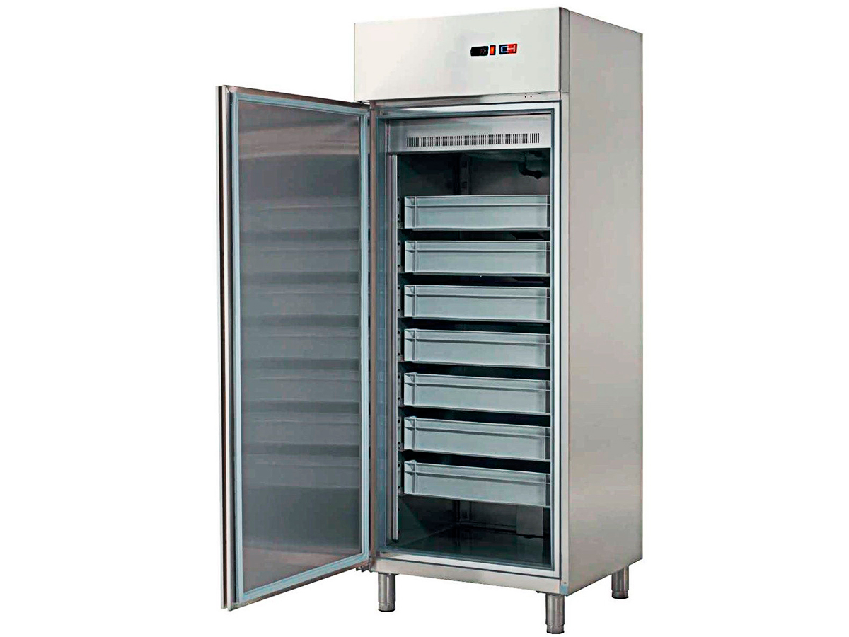 Armario refrigerado conservación de pescado con 7 contenedores ARCH-701-P de CLIMA HOSTELERÍA, para ofrecer una alta humedad en su interior y una temperatura rigurosamente constante en todos sus cajones.